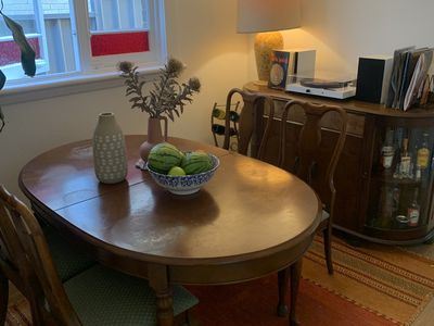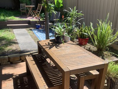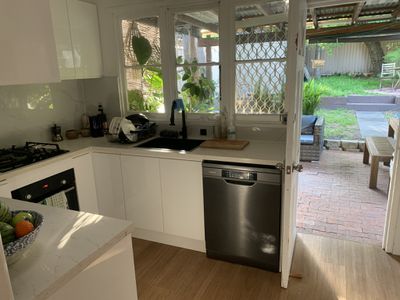 elevation off the street (w stairs carved in the bedrock) lends a beautiful, light-filled outlook from the front verandah. There’s a very cute seperate dining, a large lounge room (yet to reach its decor potential!), and the kitchen spills out onto my favourite part - the sun-filled backyard, with loads of little spozzies to sit and drink tea in the sunshine, host summer dinner parties and lap up all the light 😋
