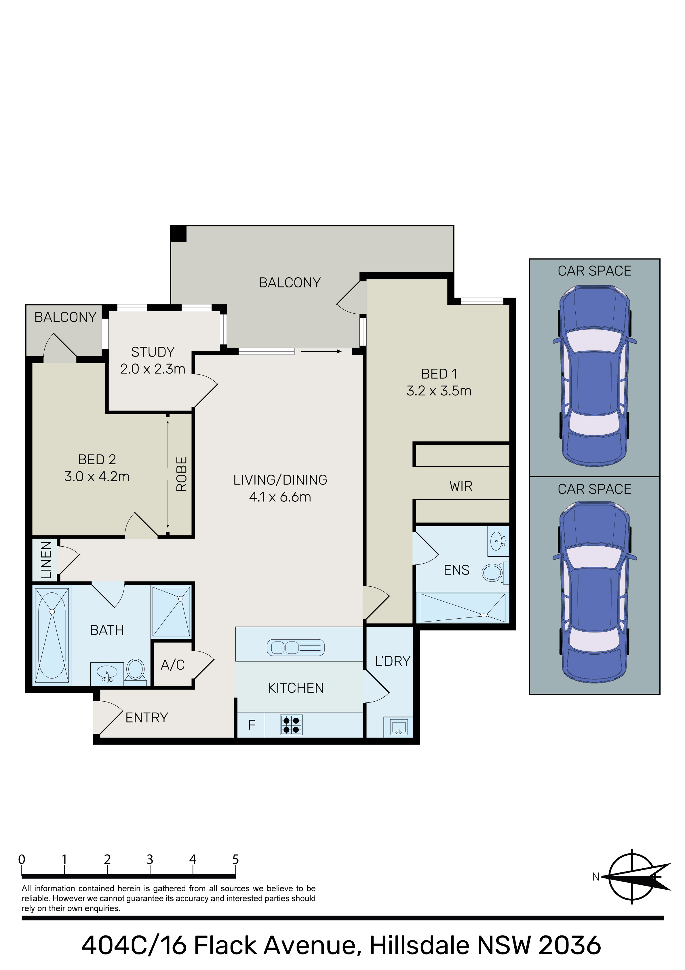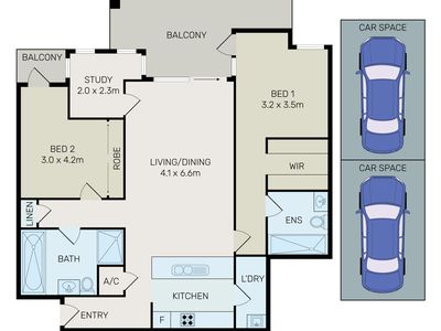 - Two bedroom plus Study room with built-in robe, main with ensuite & WIR