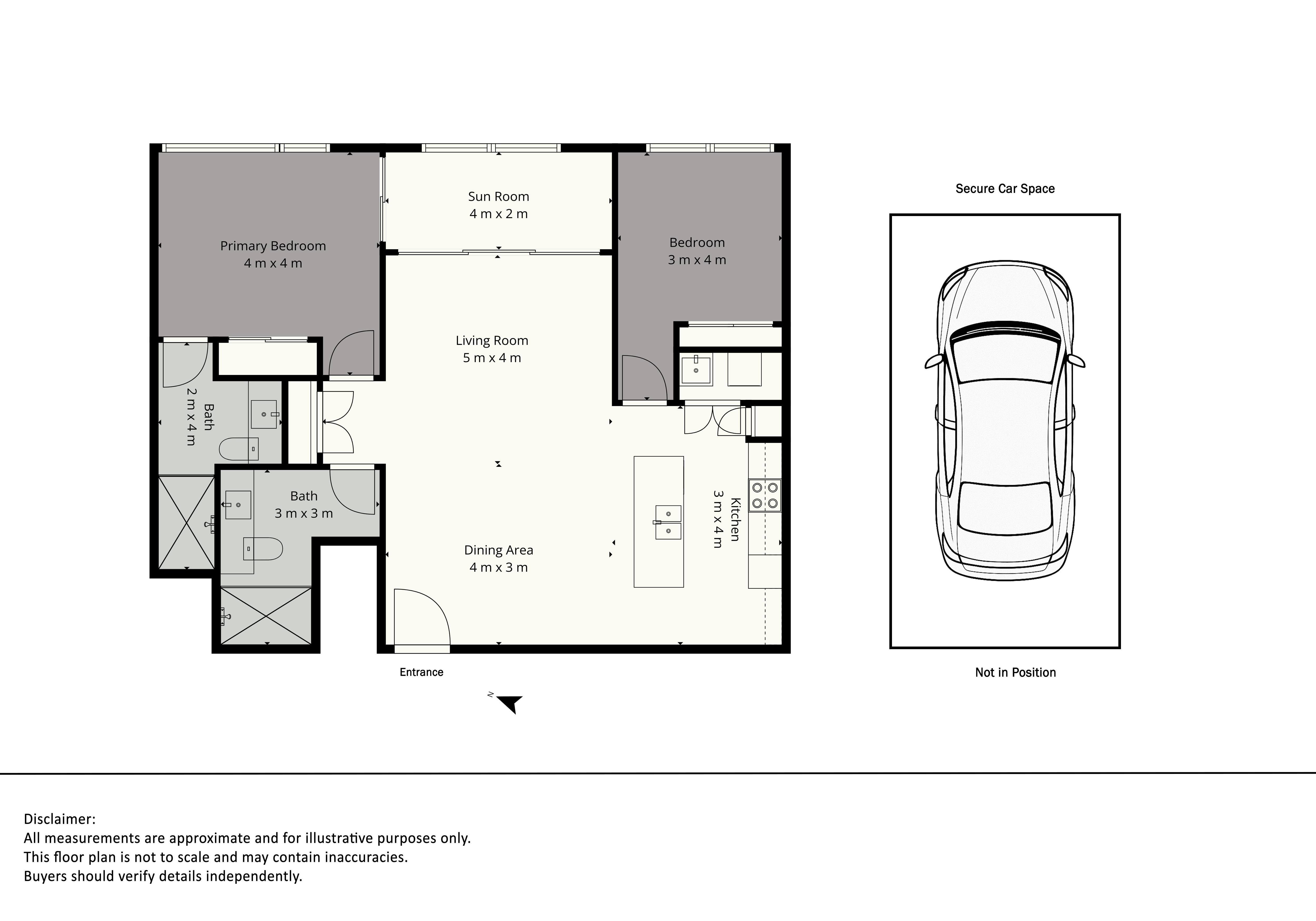 Secure car space and internal laundry