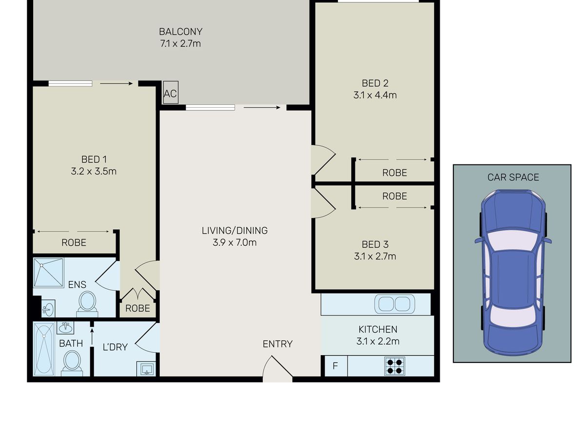 - Large study/third bedroom, all 3 rooms have build-in wardrobes